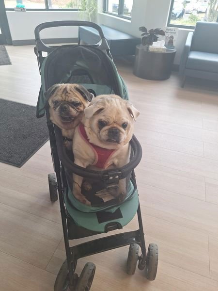 Frank and Jessie are an adorable pair of senior pugs looking for their retirement home. They are both super sweet and chill. They do great with other dogs, even their slightly aggressive foster sister